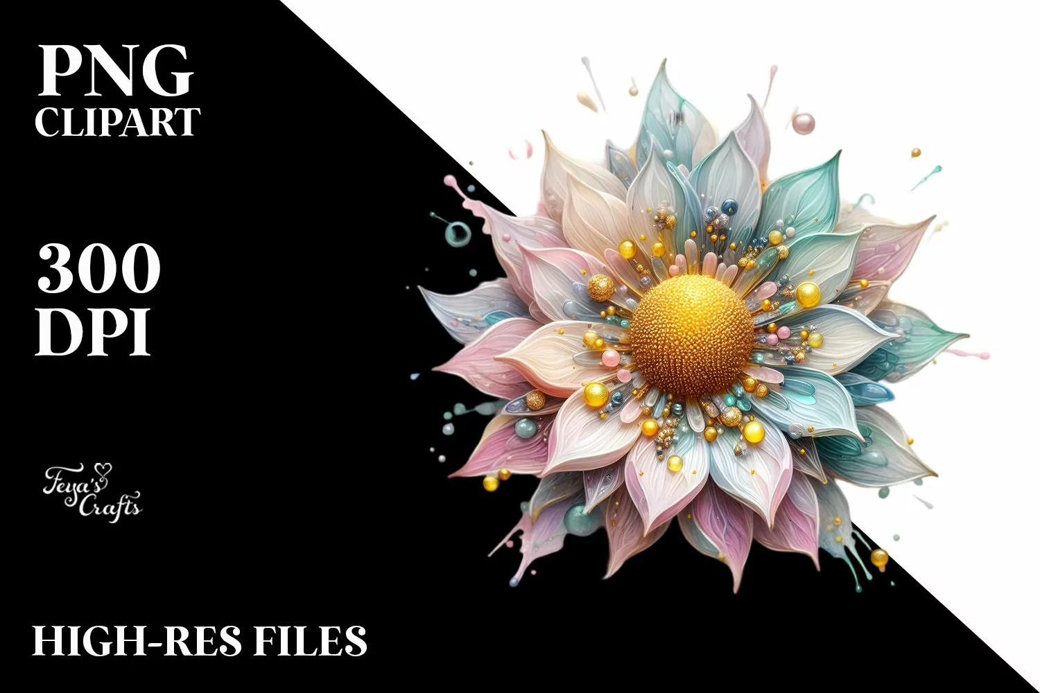 Sticker Summer Flower Shiny Abstract Png Pastel Glass Sublimation Sunflower