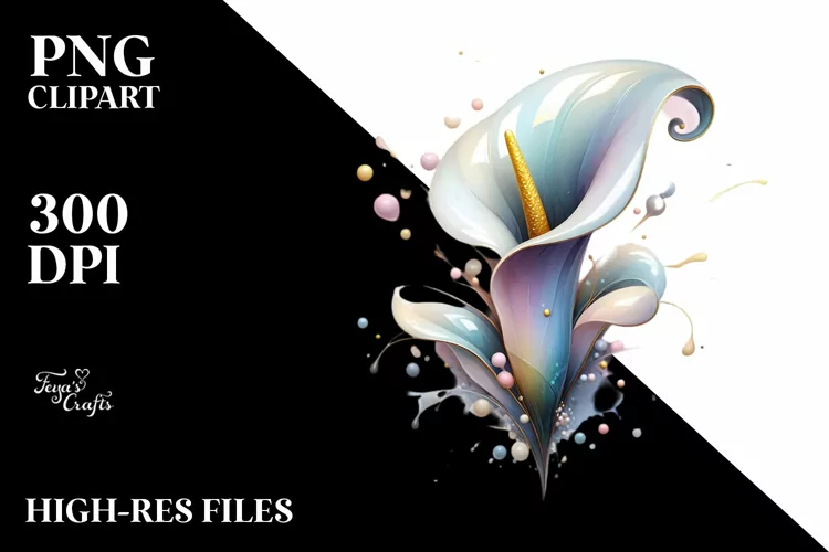 Sticker Summer Flower Png Sublimation Whitebackground Watercolorsplash Callalily Glassmaterial Goldeninsertions