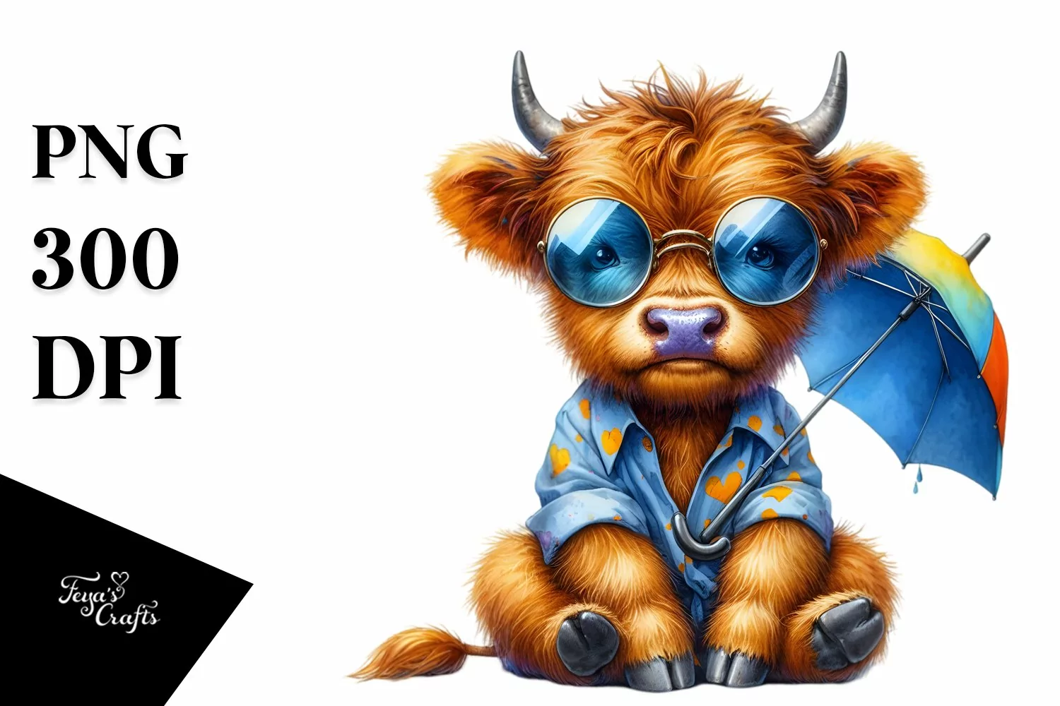Vibrant Baby Highlandcow with Cool Haircut PNG example image 1
