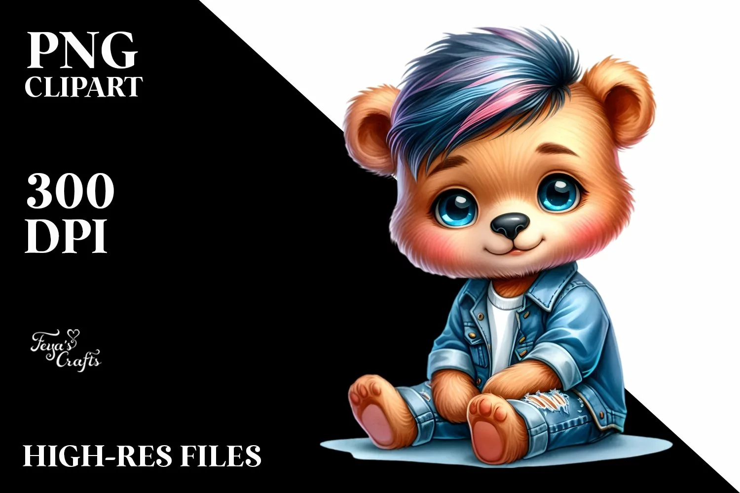 Vibrant Baby Bear with Cool Haircut PNG example image 1