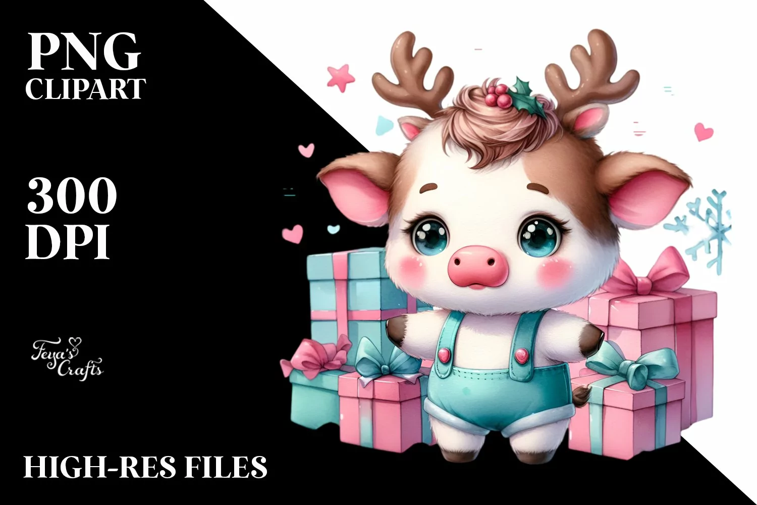 Baby Figure Giftboxes Pastelcolors Watercolorcow Crazyhaircut Extremelyexpressive Reindeerhorns
