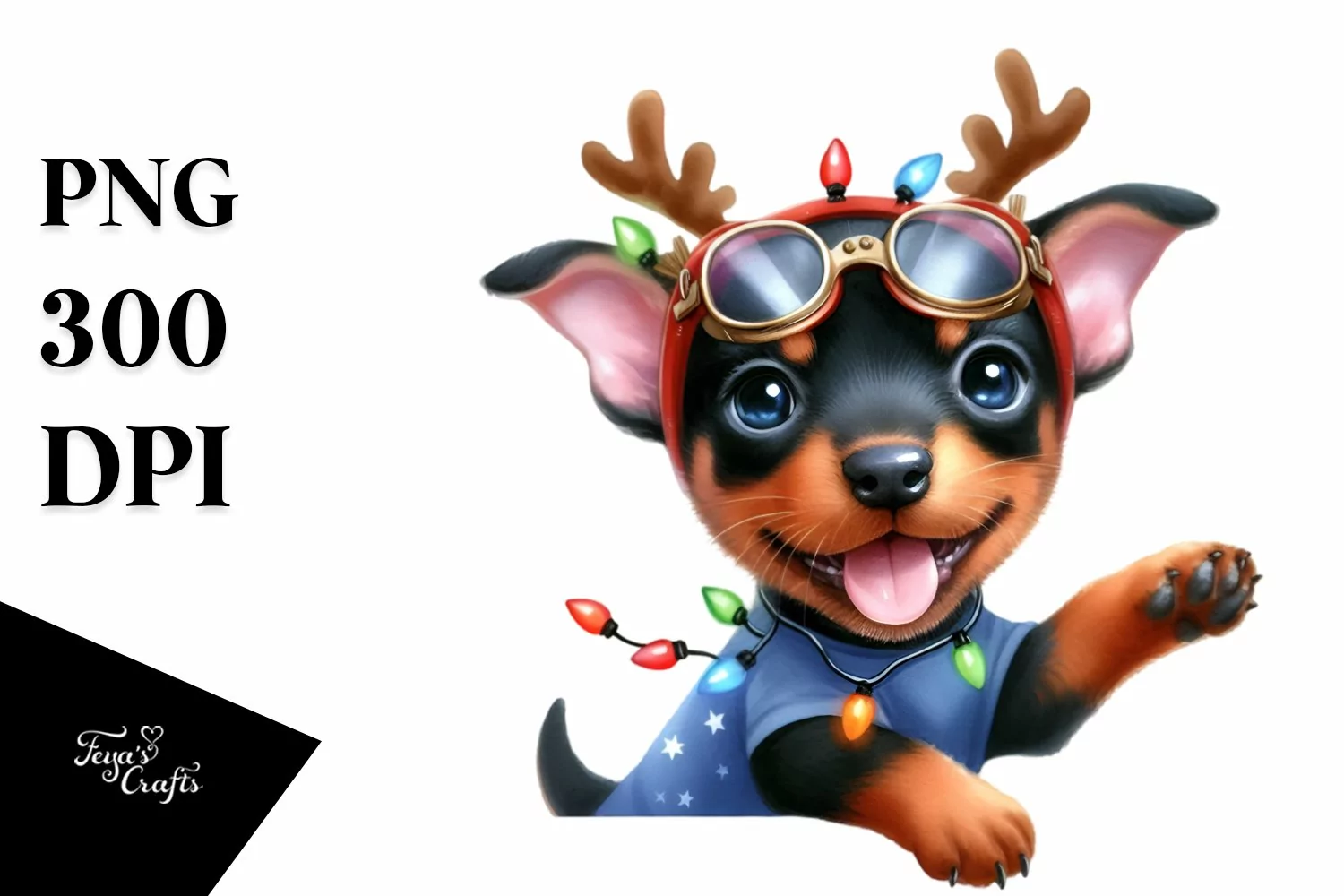 Sticker Summer Flower Png Sublimation Enthusiastic Dobermanpinscher Reindeerhorns Xpressiveface