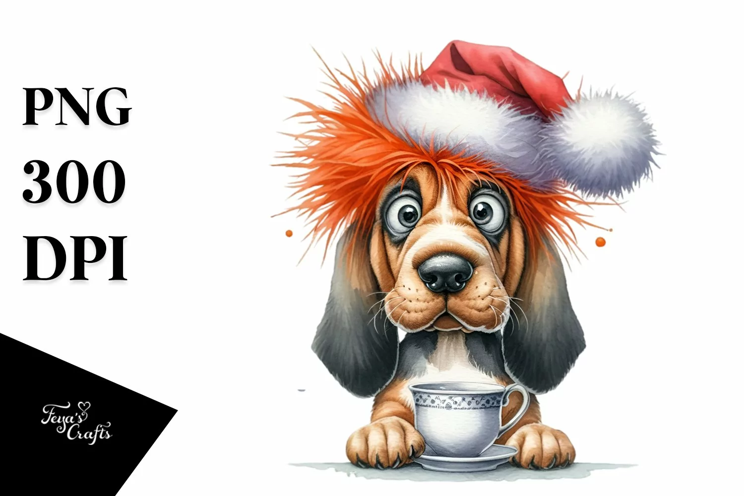 Cute Teacup Santahat Enthusiastic Bighead Watercolorbloodhound Smallbody Crazyhaircut