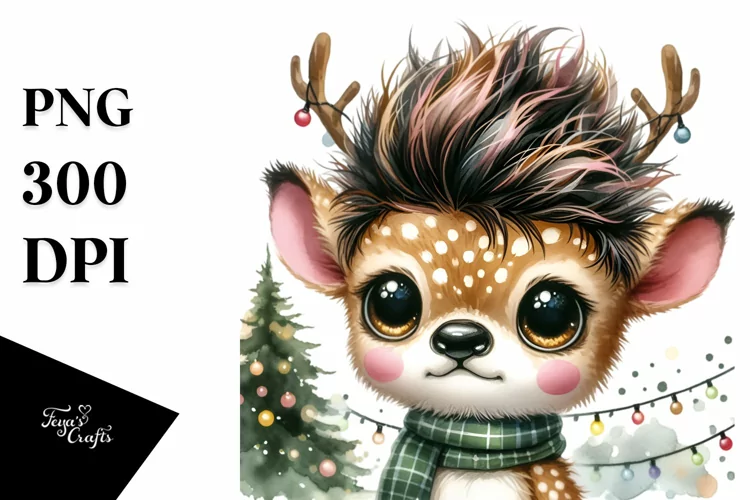 Whitebackground Centralfigure Christmasstree Crazyhaircut Extremelyexpressive Reindeerhorns Watercolordeer