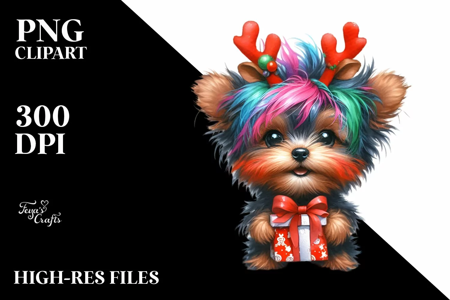 Watercolor Baby Vibrant Giftbox Whitebackground Yorkipoo Centralfigure Crazyhaircut