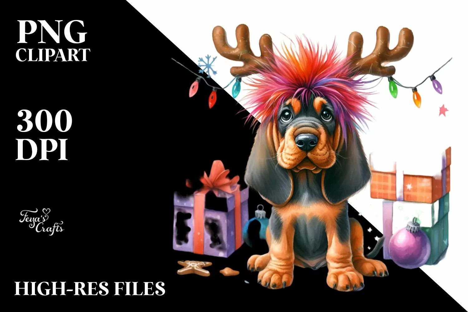 a Vibrant Baby Bloodhound PNG with Reindeer Horns example image 1