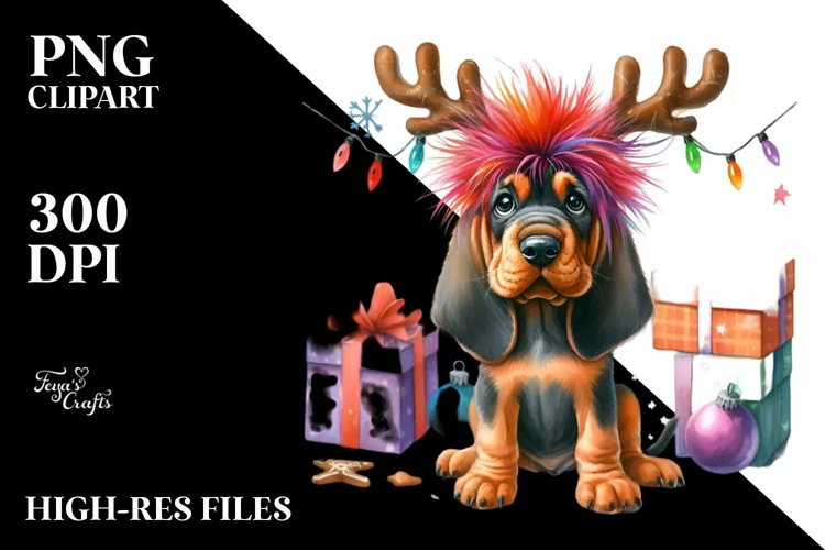 a Vibrant Baby Bloodhound PNG with Reindeer Horns