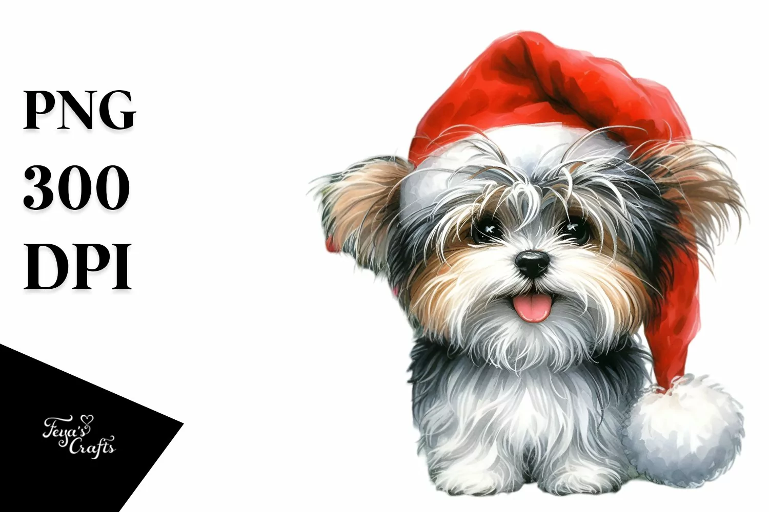 Watercolor Baby Winter Expressive Whitebackground Santahat Havanese Christmasstree Crazyhaircut