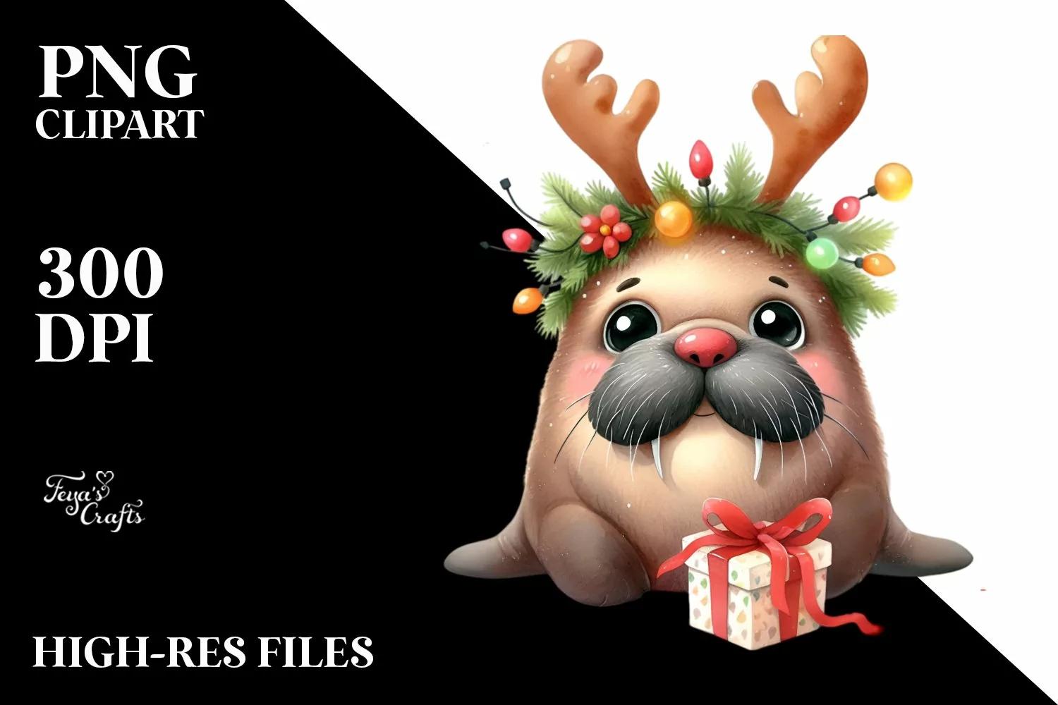 Sticker Summer Flower Png Sublimation Crazyhaircut Extremelyexpressive Reindeerhorns Christmastreelights Holdingagiftbox