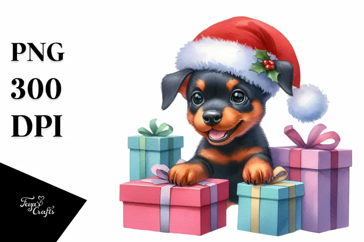 Watercolor Baby Santahat Giftboxes Coolhaircut Dobermanpinscher Bighead Centralfigure