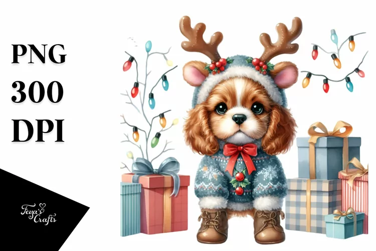 Expressive Baby Watercolor Cocker Spaniel, Winter Outfit PNG example image 1