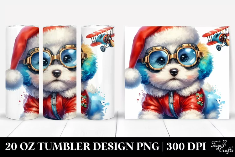 Expressive Bichon Frise with Santa Hat, High-Quality 20 Oz