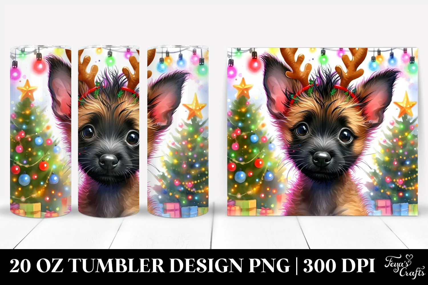 Similar Design Products to Colorful Malinois with Reindeer Horns, Transparent 20 Oz