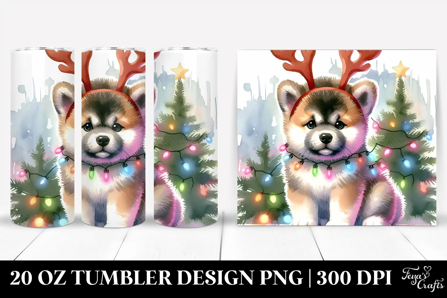 Colorful Akita with Reindeer Horns, Transparent 20 Oz example image 1