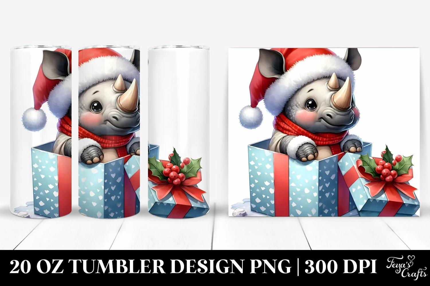 Festive Rhino, Digital 20 Oz Tumbler example image 1