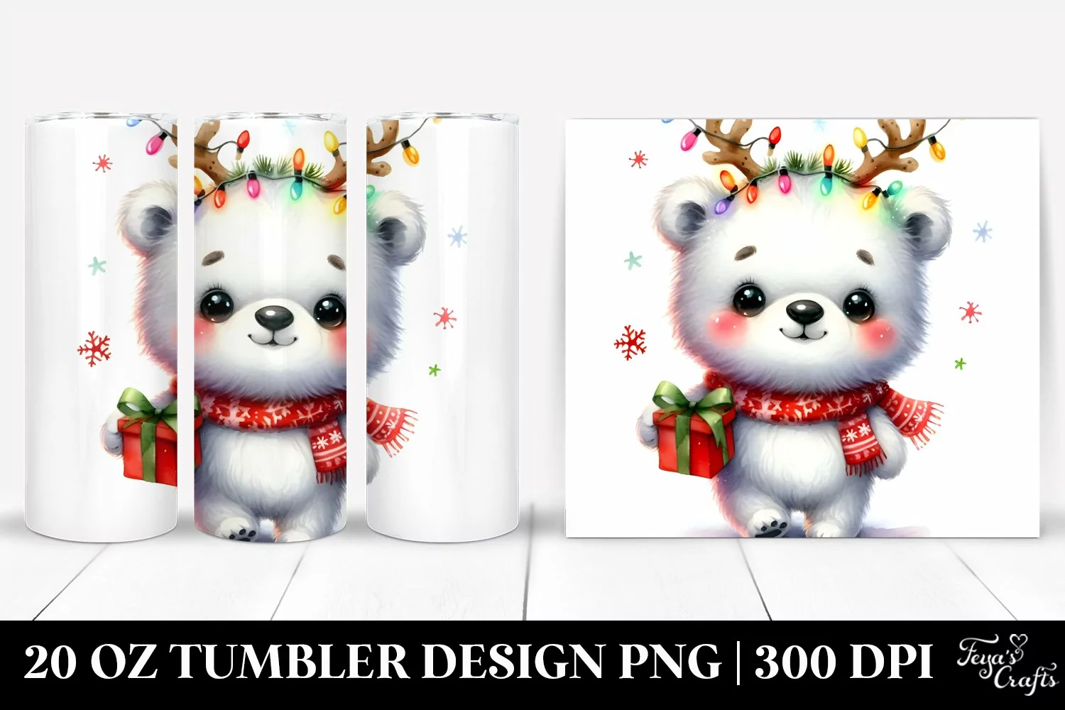 Enthusiastic Baby Polar Bear with Reindeer Horns example image 1