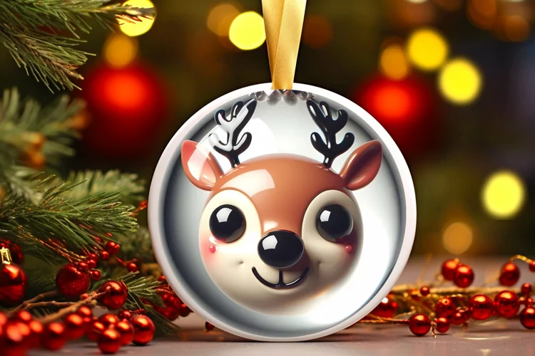 Shiny Christmas Face Round Deer example image 1