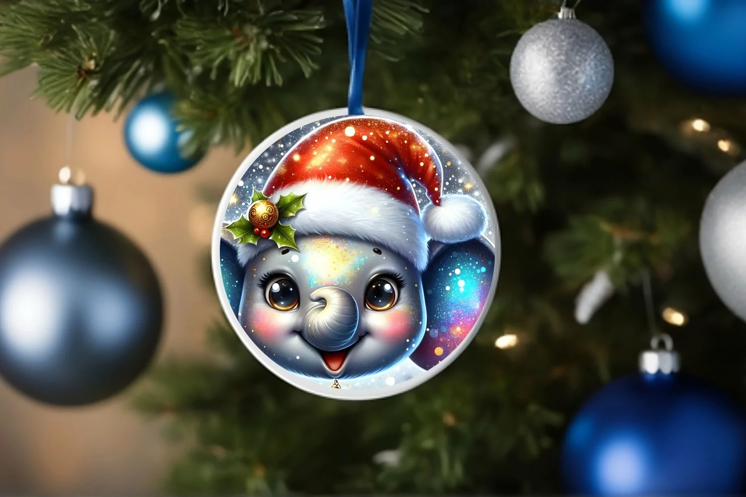 Christmas Elephant Smiling Round Ornament Sublimation PNG example image 1