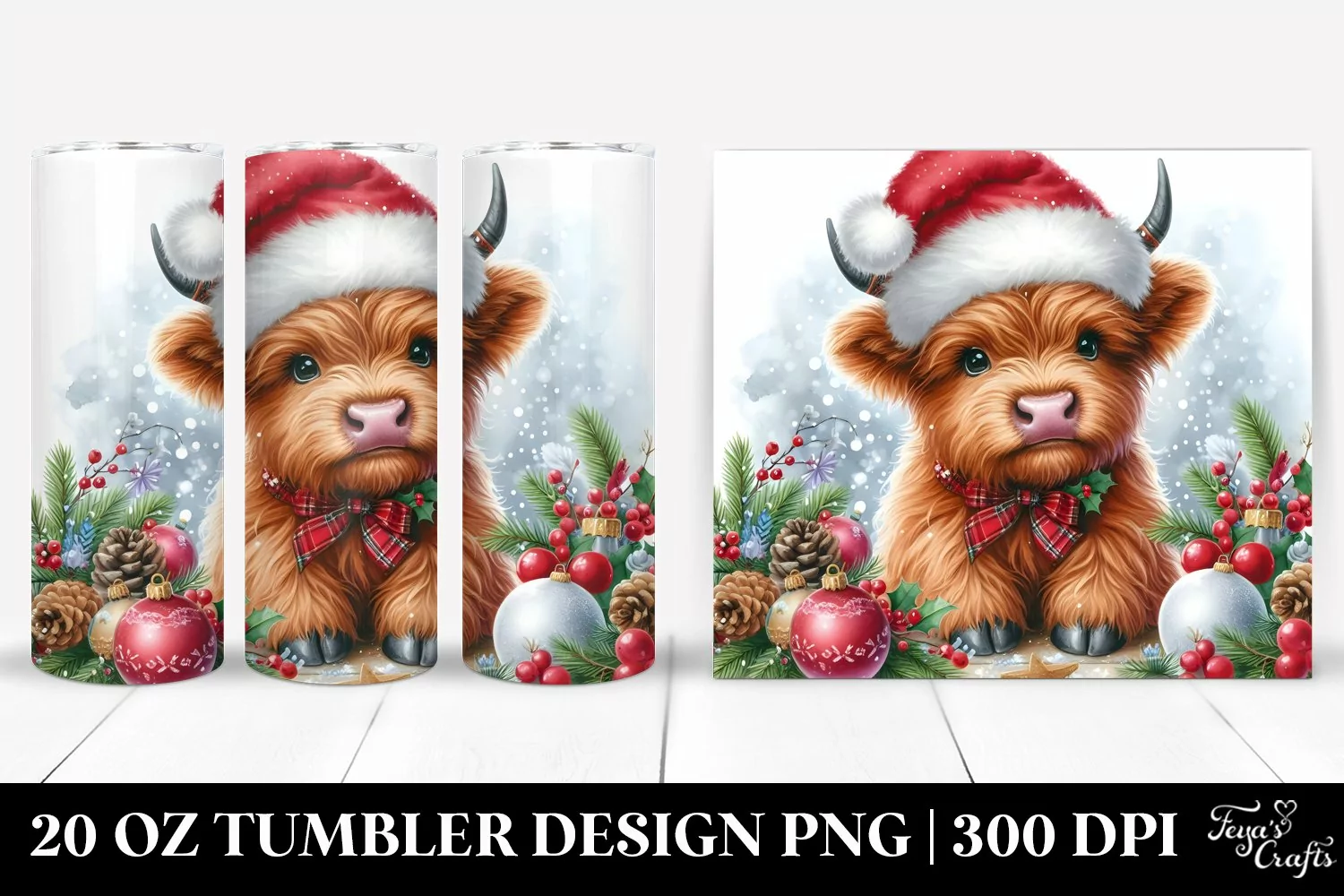 Cute Highland Cow Peeking Clipart 20 Oz Tumbler example image 1