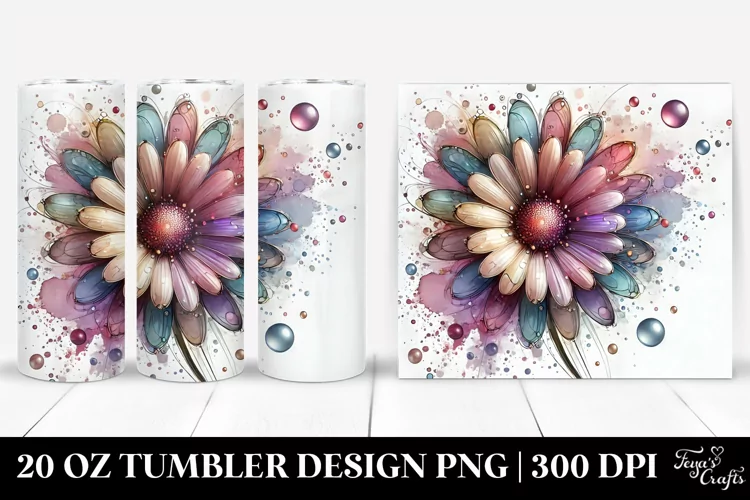 Decorative Watercolor Art Shiny Abstract Pastel Glass Metallic Daisy Piece