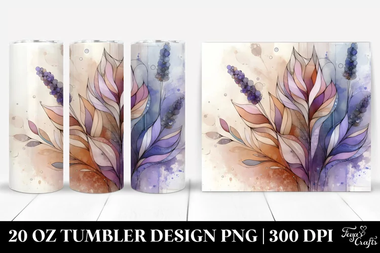 Watercolor Sticker Summer Flower Lavender Wooden Abstract Png Glass Sublimation