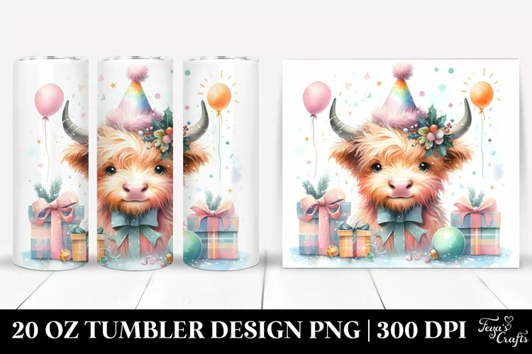 Watercolor Sticker Summer Cute Christmas Flower Png Cow Highland Sublimation