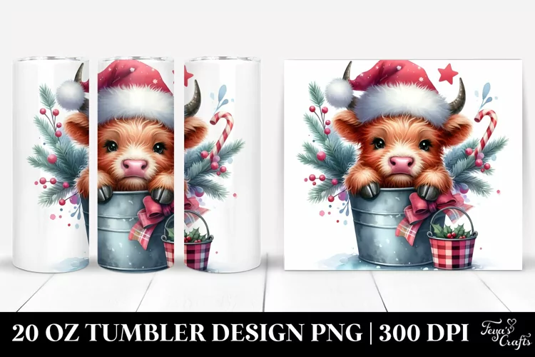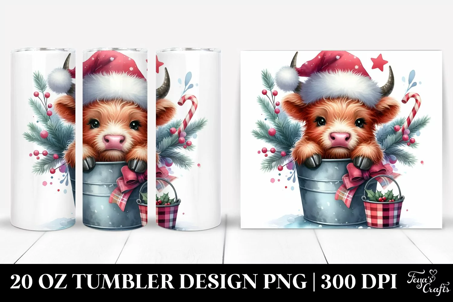 Similar Design Products to Cute Highland Cow with Christmas Branches, 20 Oz Tumbler