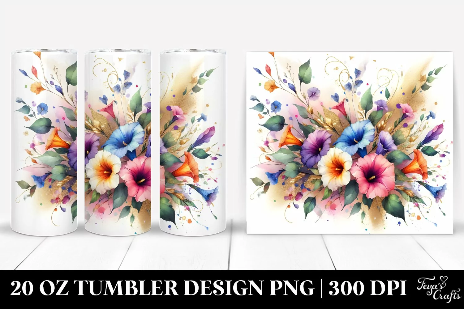 Similar Design Products to Colorful Watercolor Bouquet Clipart 20 Oz Tumbler