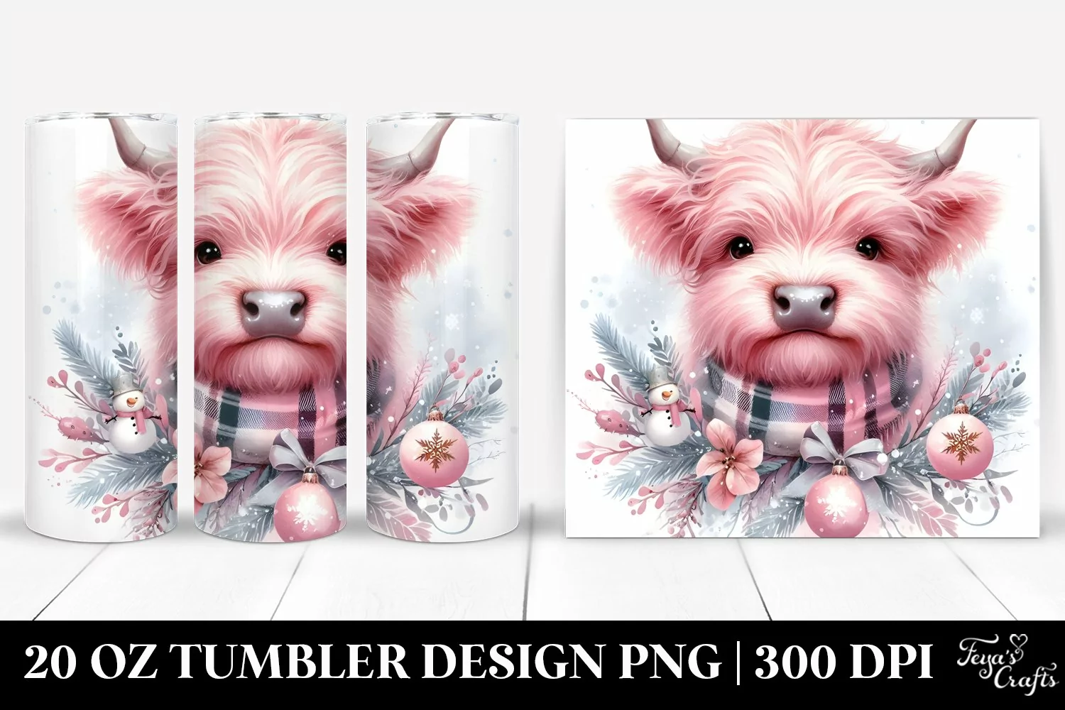 Pink Highland Cow with Christmas Decorations 20 Oz Tumbler example image 1