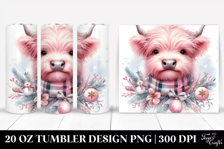 Similar Design Products to Pink Highland Cow with Christmas Decorations 20 Oz Tumbler