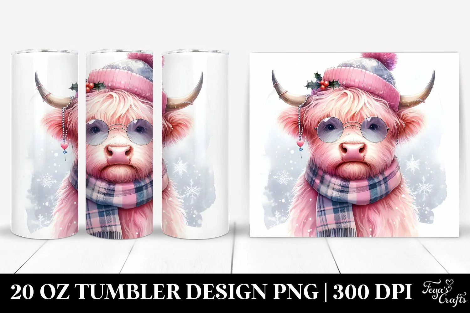 Cute Highland Cow with Christmas Decor, Transparent 20 Oz example image 1