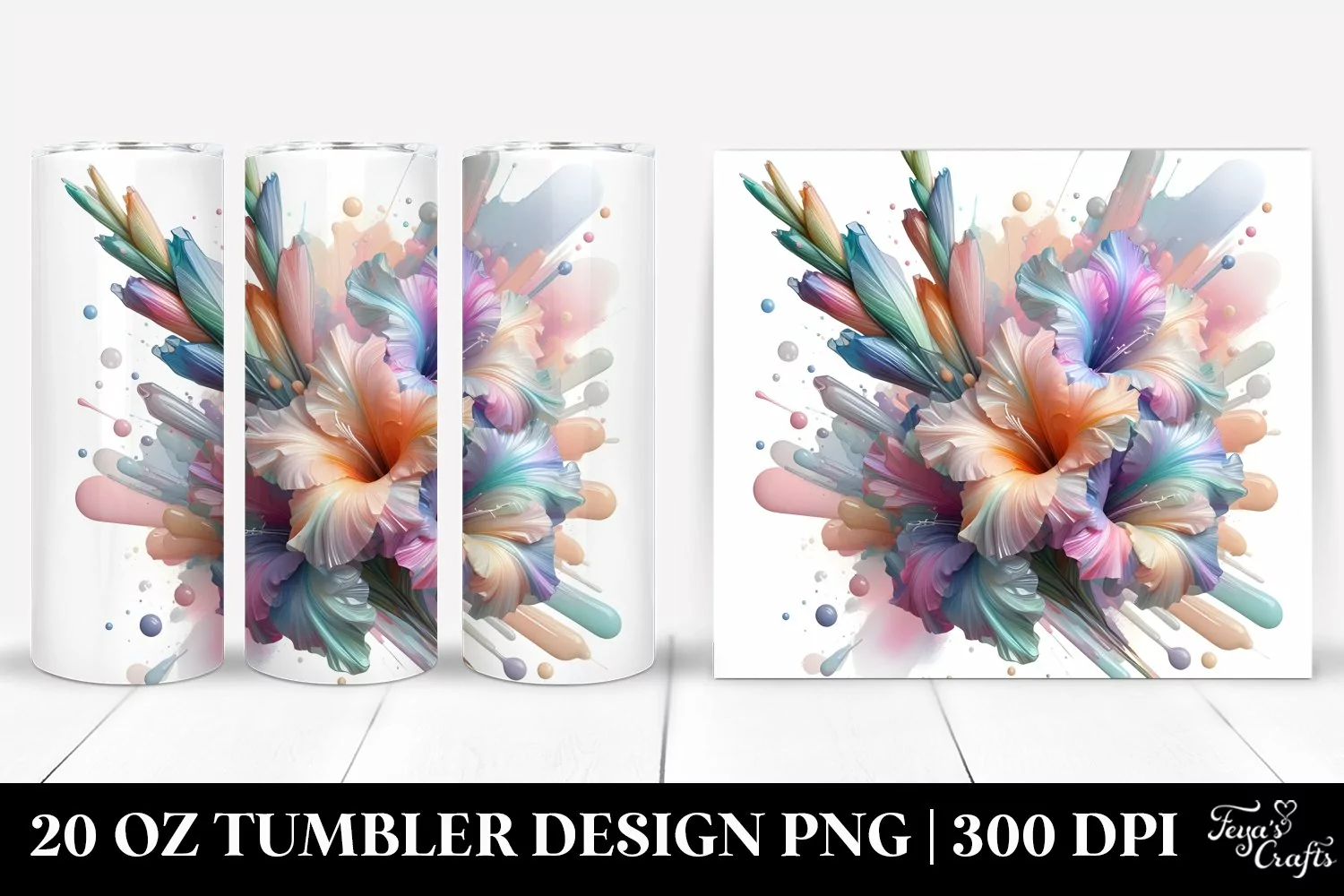 Watercolor Sticker Summer Flower Glossy Abstract Png Glass Sublimation Gladiolus