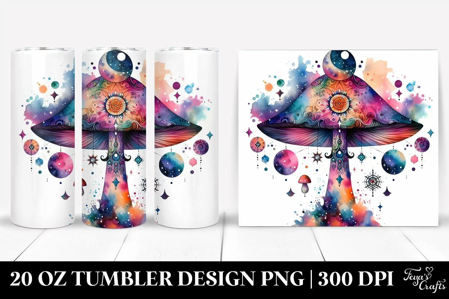 Vibrant Celestial Mushroom Clipart 20 Oz Tumbler example image 1