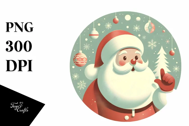 Vintage Image Simple Round Colorful Bright Santa Merry Whitebackground Retrochristmass