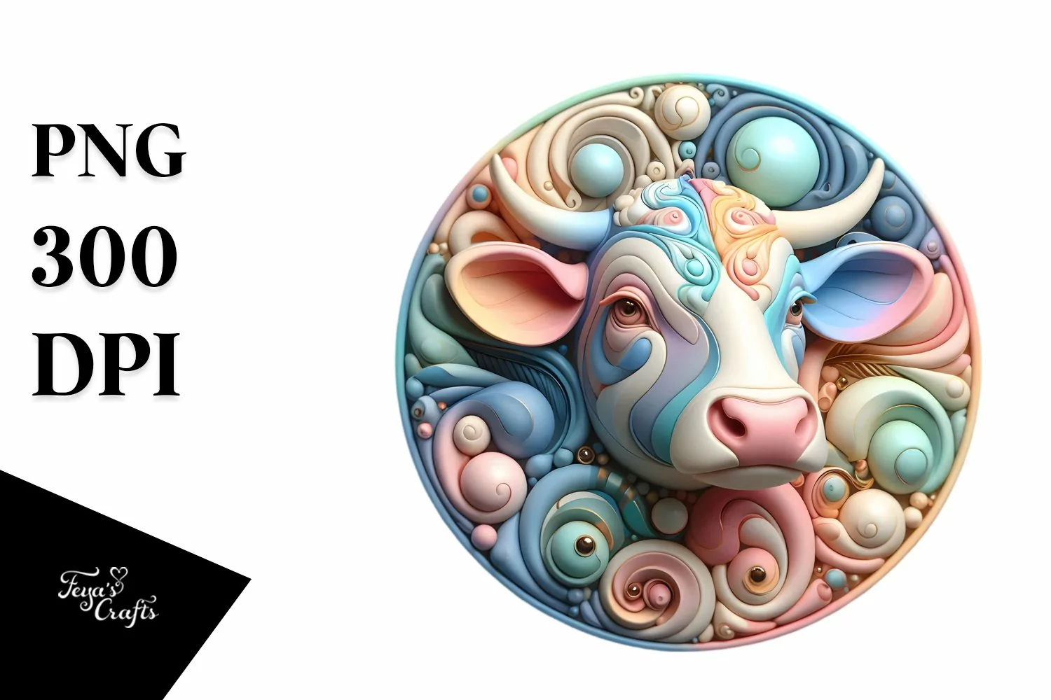 Colorful 3D Round Cow Ornament PNG