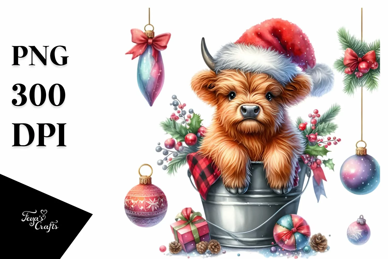 Whimsical Whitebackground Santahat Christmassornaments Highlandbabycow