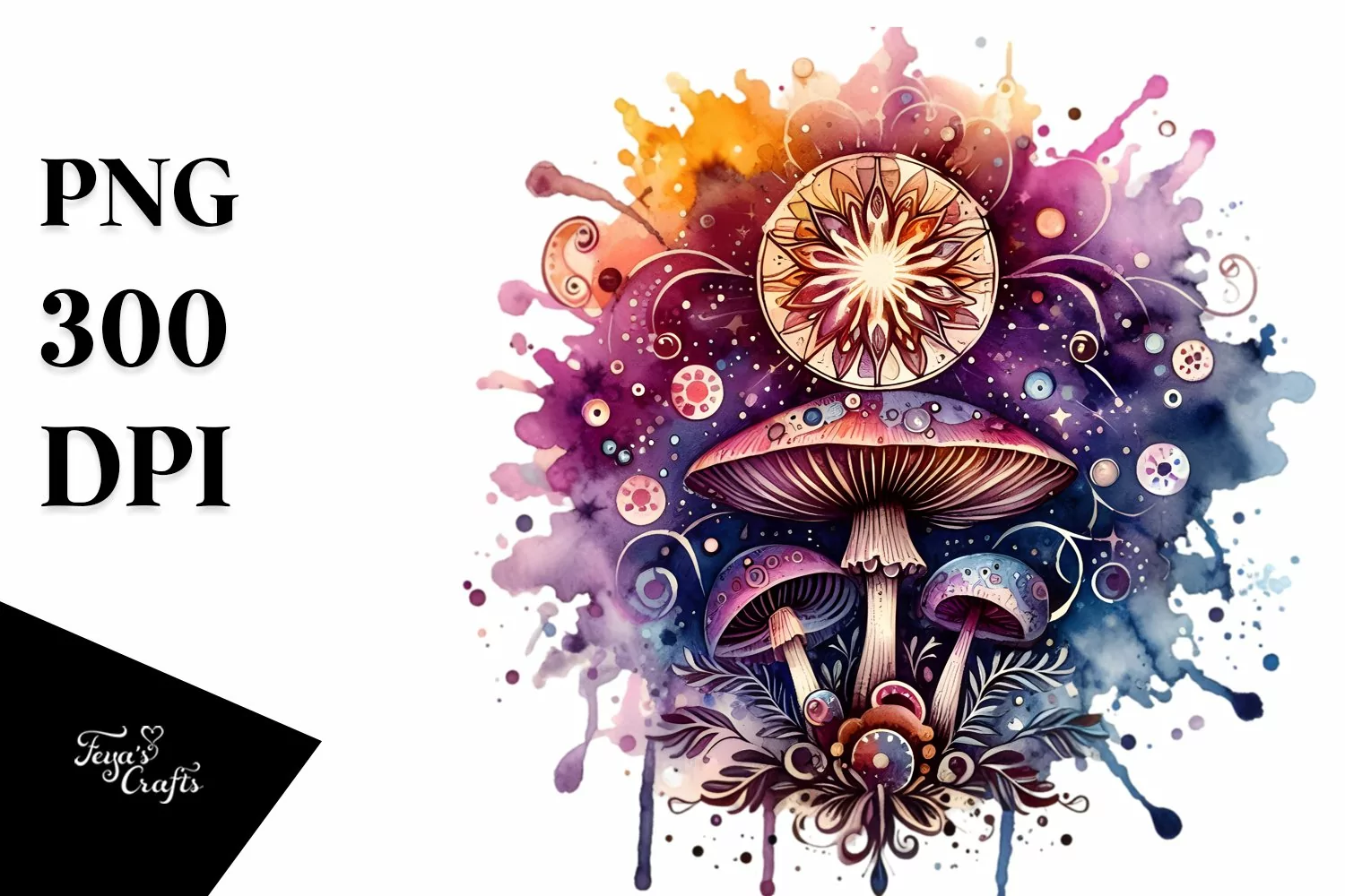 Watercolor Splash Vibrant Mushroom Whitebackground Tarot Centered Magicalcelestial