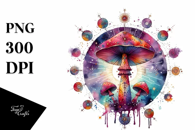 Similar Design Products to Vibrant Celestial Mushroom in Watercolor