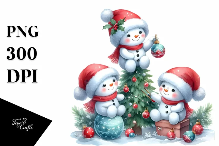 Similar Design Products to Cute Baby Snowmen Decorating a Tree