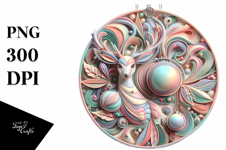 Colorful Pastel 3D Deer Ornament PNG example image 1