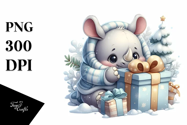 Similar Design Products to Digital Painting Baby Rhino Christmas PNG