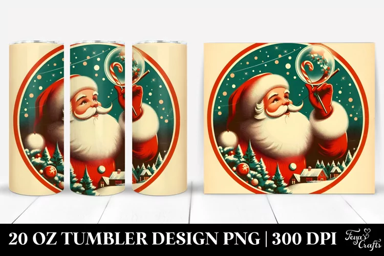 Retro Santa Christmas Clipart 20 Oz Tumbler example image 1