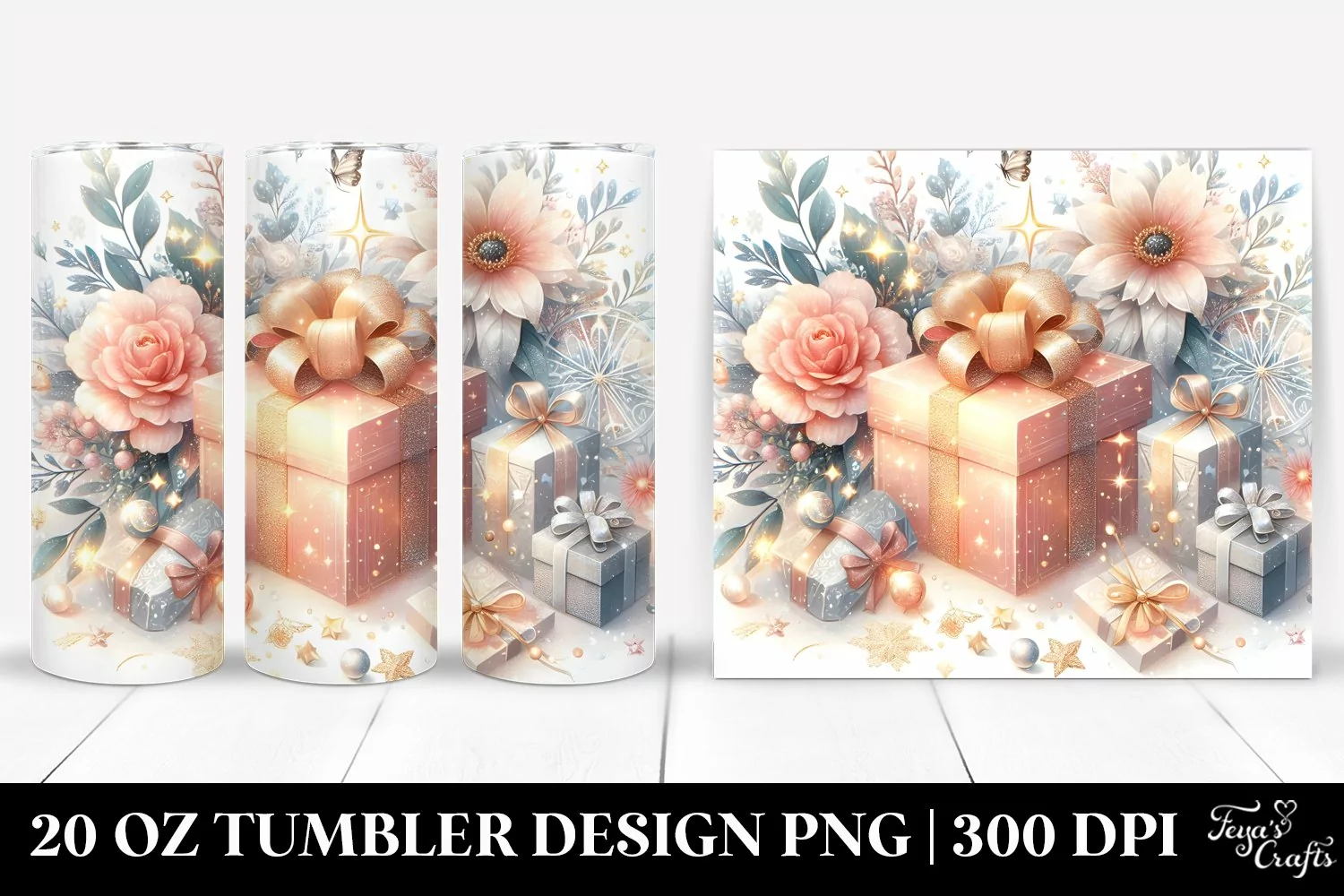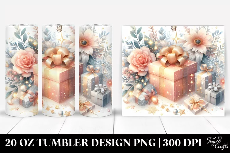 Glittery Holiday Present Clipart, Transparent 20 Oz Tumbler example image 1