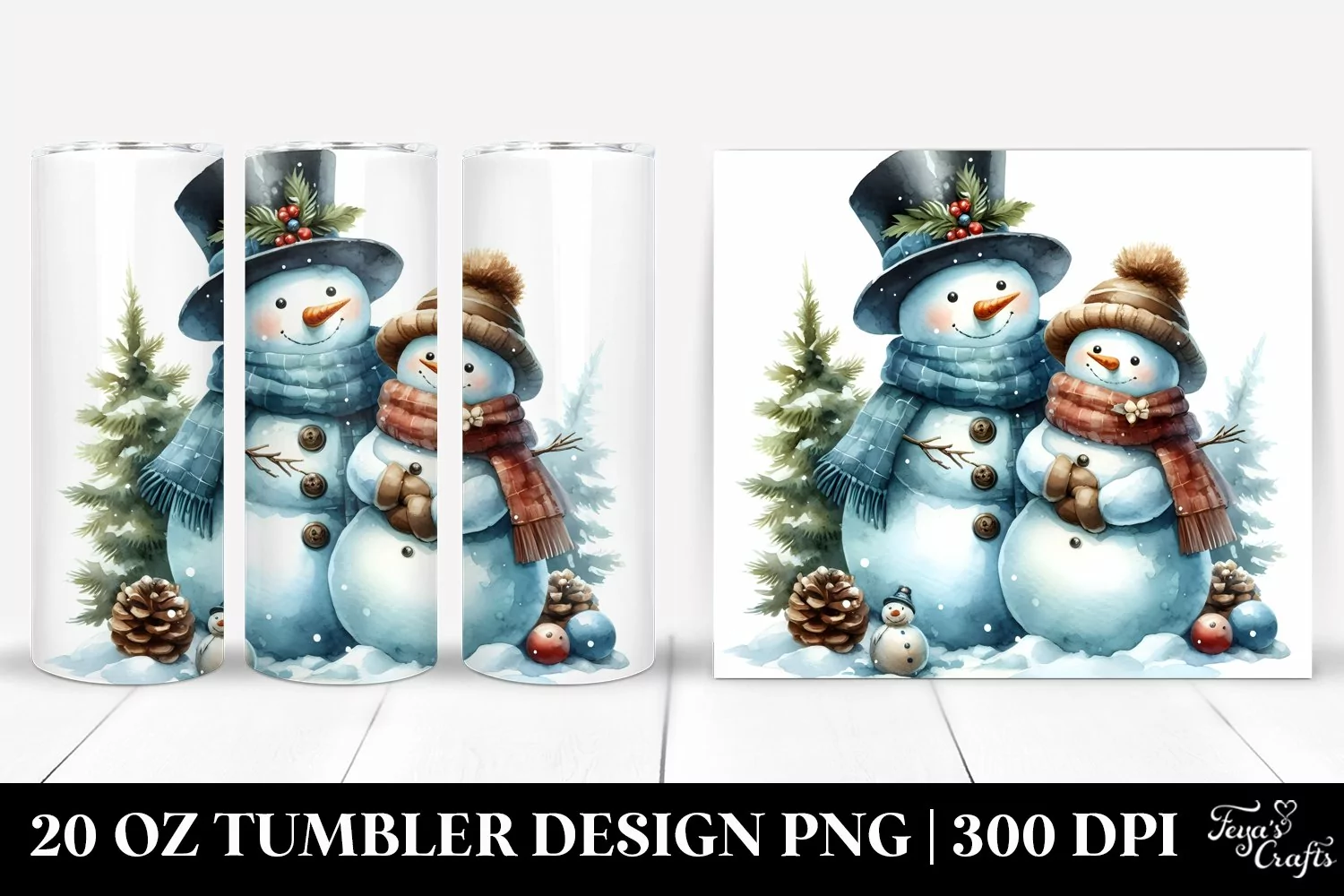 Similar Design Products to Washed Watercolor Snowman Clipart, 20 Oz Tumbler