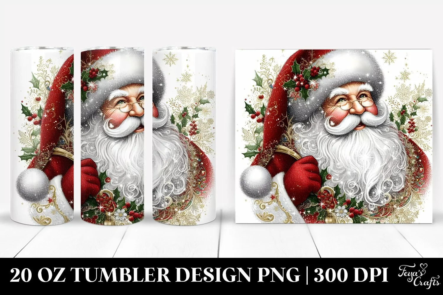 Similar Design Products to Glittery Santa Portrait Clipart, Transparent 20 Oz Tumbler