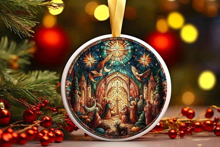 Round Christmas Ornament Sublimation|Clipart example image 1