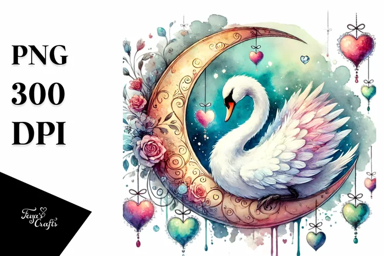 Similar Design Products to Swan on Half Moon, Watercolor PNG