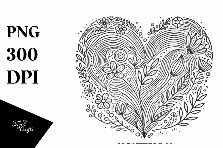 Sticker Summer Flower Heart Png Sublimation Lineart