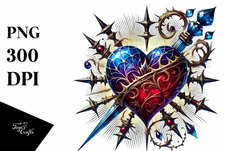 Similar Design Products to Tattoo Style Heart with Spikes PNG