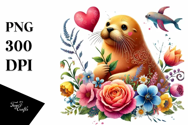 Watercolor Sticker Summer Flower Png Walrus Sublimation Adorned Digitalpainting